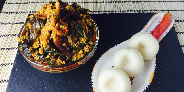 It is not eaten alone, and it is served with a form of rich and flavorful soup or stew such as egusi soup, okra soup, ewedu soup (jute leaves), or light soup. Pour in the egusi paste and stir, till all the palm oil has been absorbed. Slowly add the stock and set on low heat to simmer. Boil the meats and stockfish with the seasoning cubes till almost done. Traditionally this soup is made with assorted meats including lamb, beef, goat, fish, shrimp, and crayfish.
